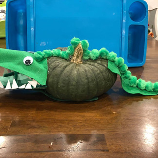 We talked about the beach and the heat and the spanish moss. We made a Florida Halloween alligator pumpkin! We had lots of snuggles and did lots of "weading"!